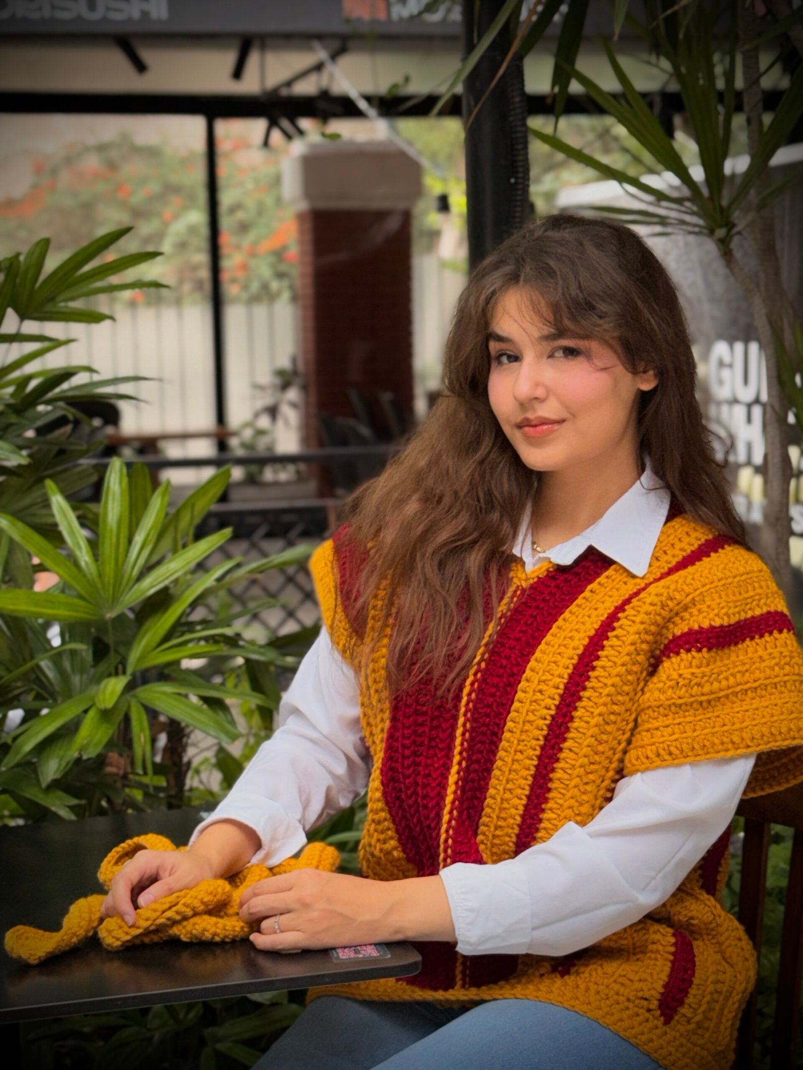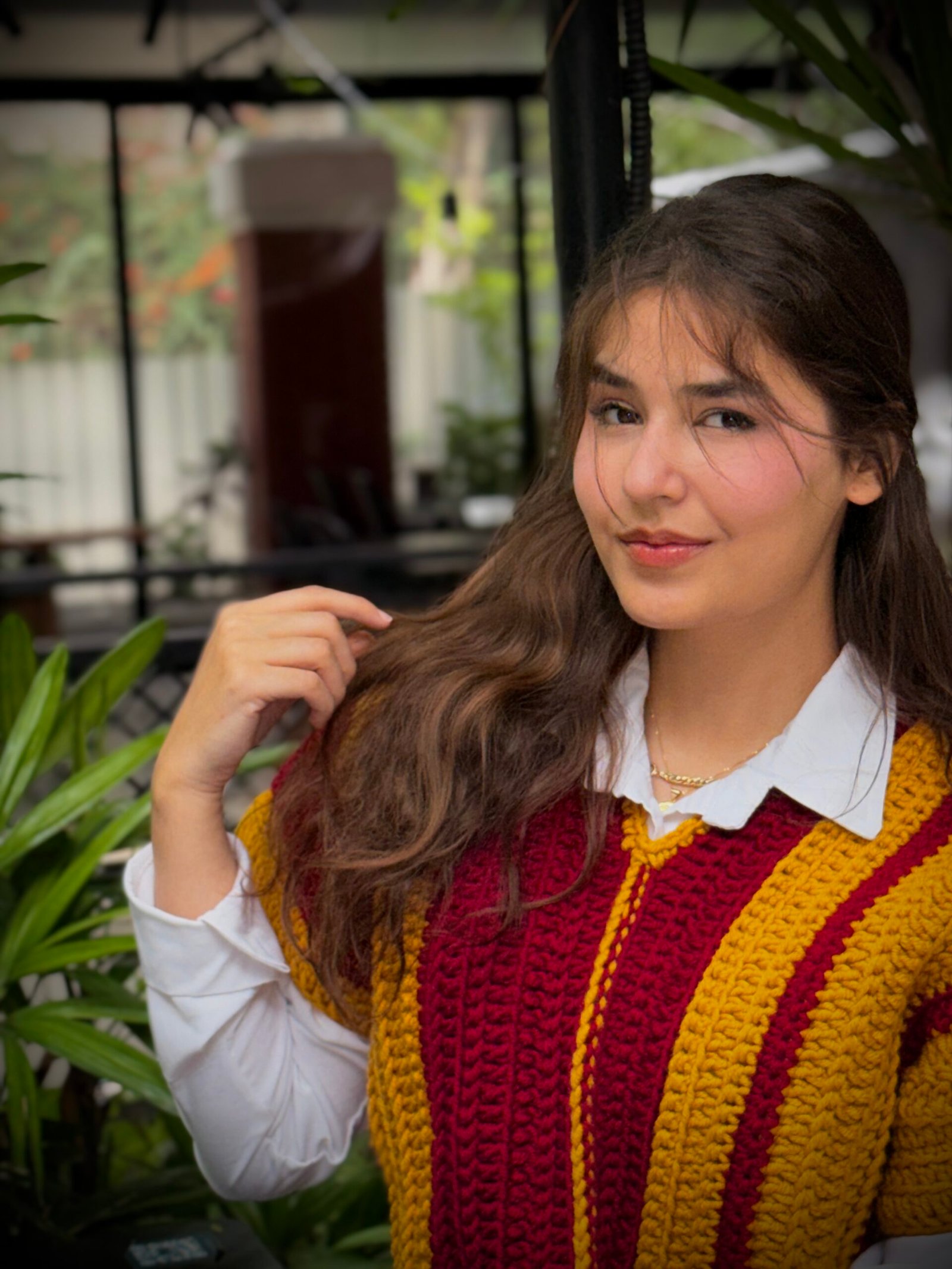 A luxurious Turkish wool pullover designed for mothers, featuring rich honey tones blended with burgundy for a chic, elegant, and youthful look.